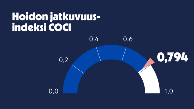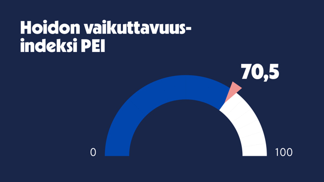 Alla esittelemme kolme tärkeintä mittariamme: asiakkaiden suositteluhalukkuutta mittaava NPS, hoidon jatkuvuutta mittaava COCI ja hoidon vaikuttavuutta mittaava PEI.