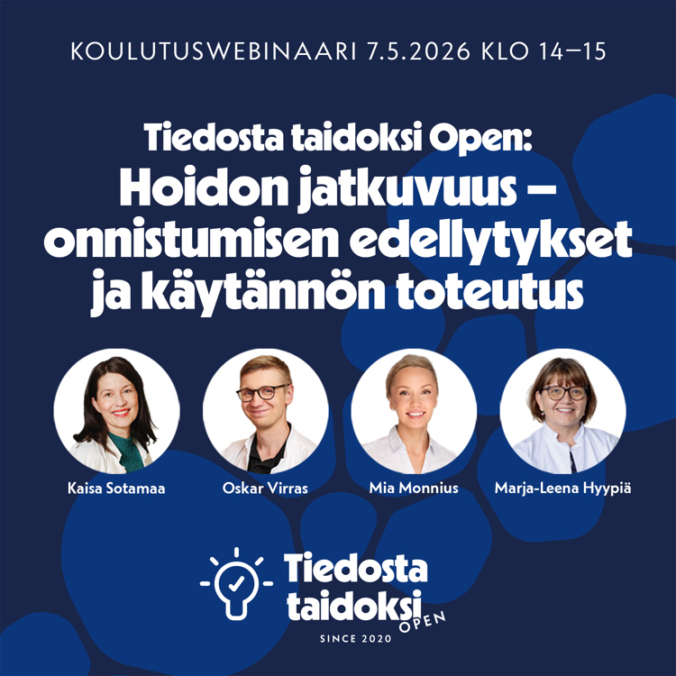 Mitä: Terveystalon Tiedosta taidoksi Open -koulutuswebinaari
