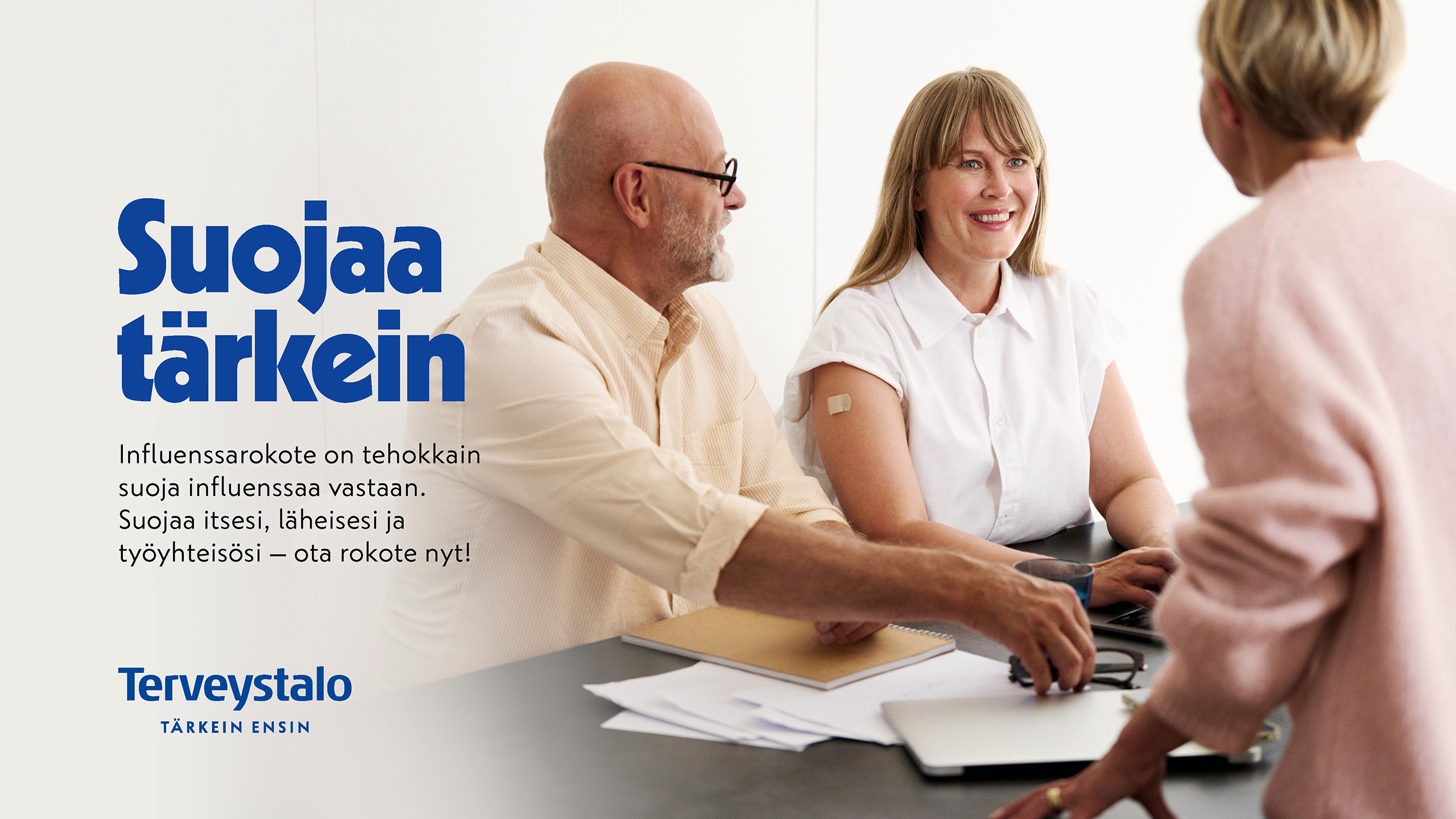 Influenssakausi on käynnistynyt ja influenssaa on todettu eri puolilla Suomea. Nyt on vielä hyvä hetki rokottautua ennen tautihuippua ja lähestyvää joulua. Tarjoamme influenssarokotteen työterveysasiakkaillemme etuhintaan 25 € / hlö (norm. 52,90 € / hlö), kun rokote otetaan 8.–21.12.2025 Terveystalon toimipaikassa.